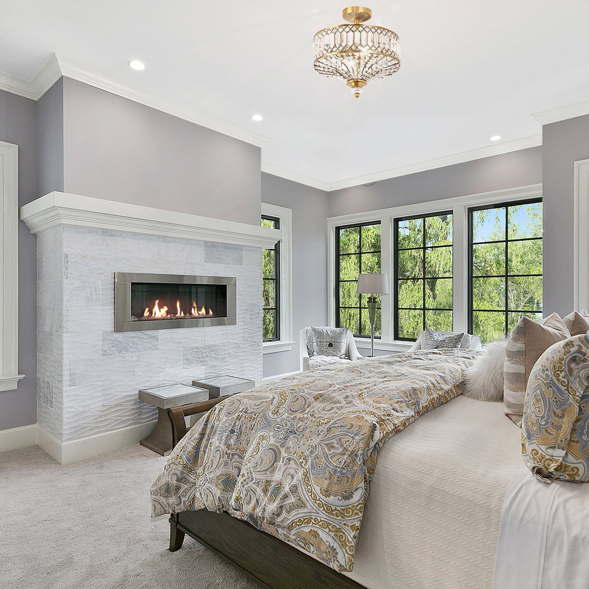 Luminaire semi-encastré en verre à plusieurs niveaux Silver...