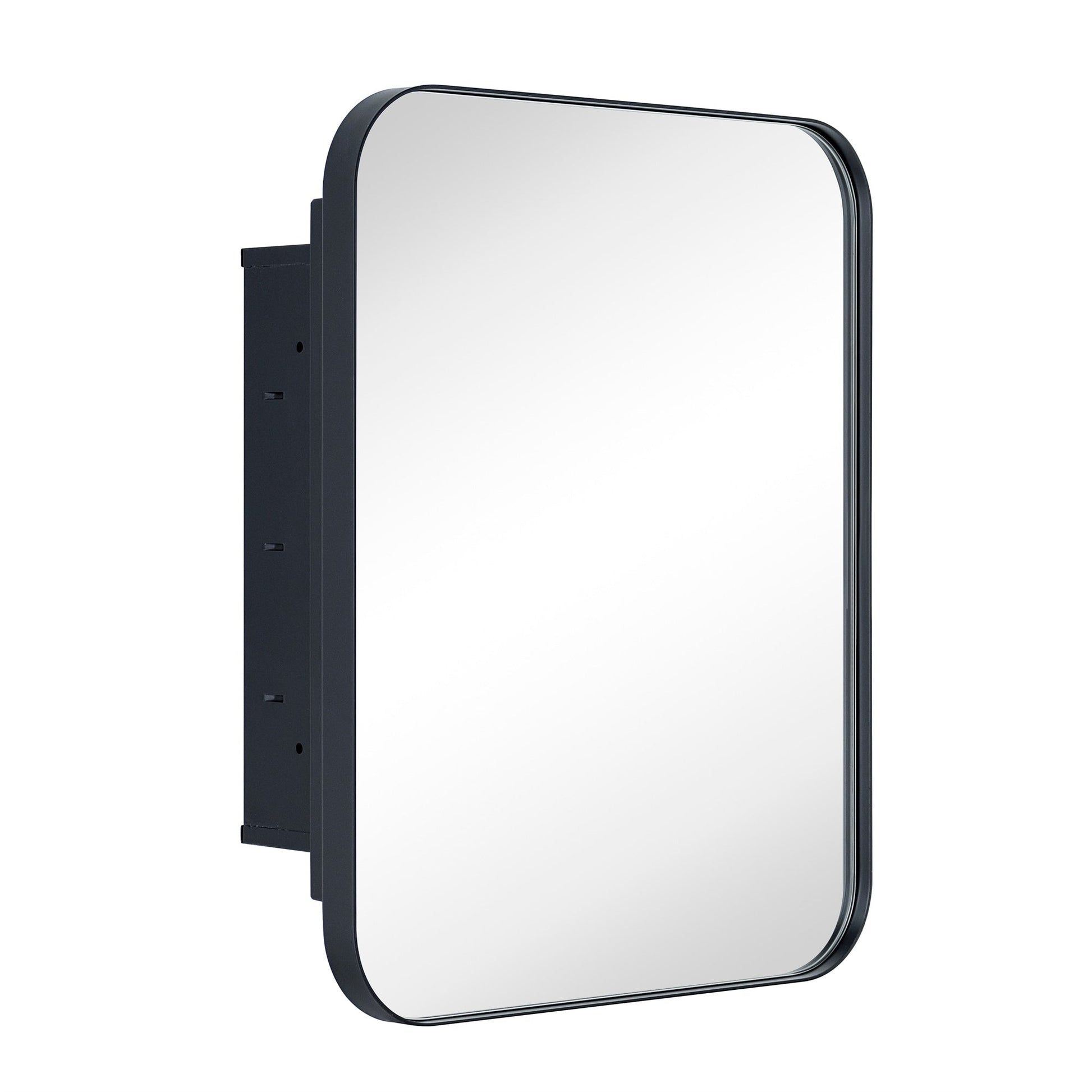 Cette armoire à pharmacie avec cadre en acier inoxydable est conçue avec un montage mural encastré. Moderne et contemporain, ce miroir de salle de bain avec armoire offre de nombreux reflets enchanteurs grâce à son rectangle arrondi en verre miroir.