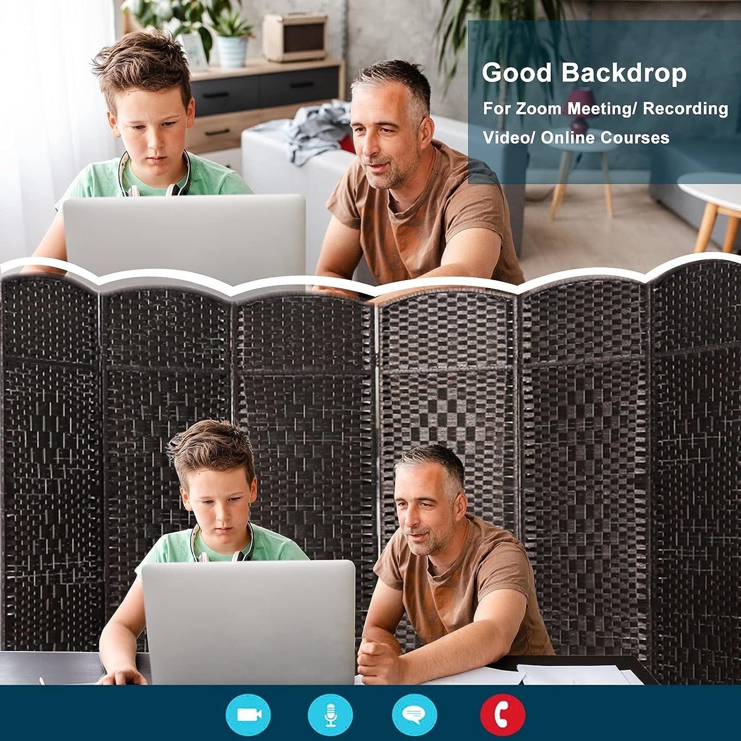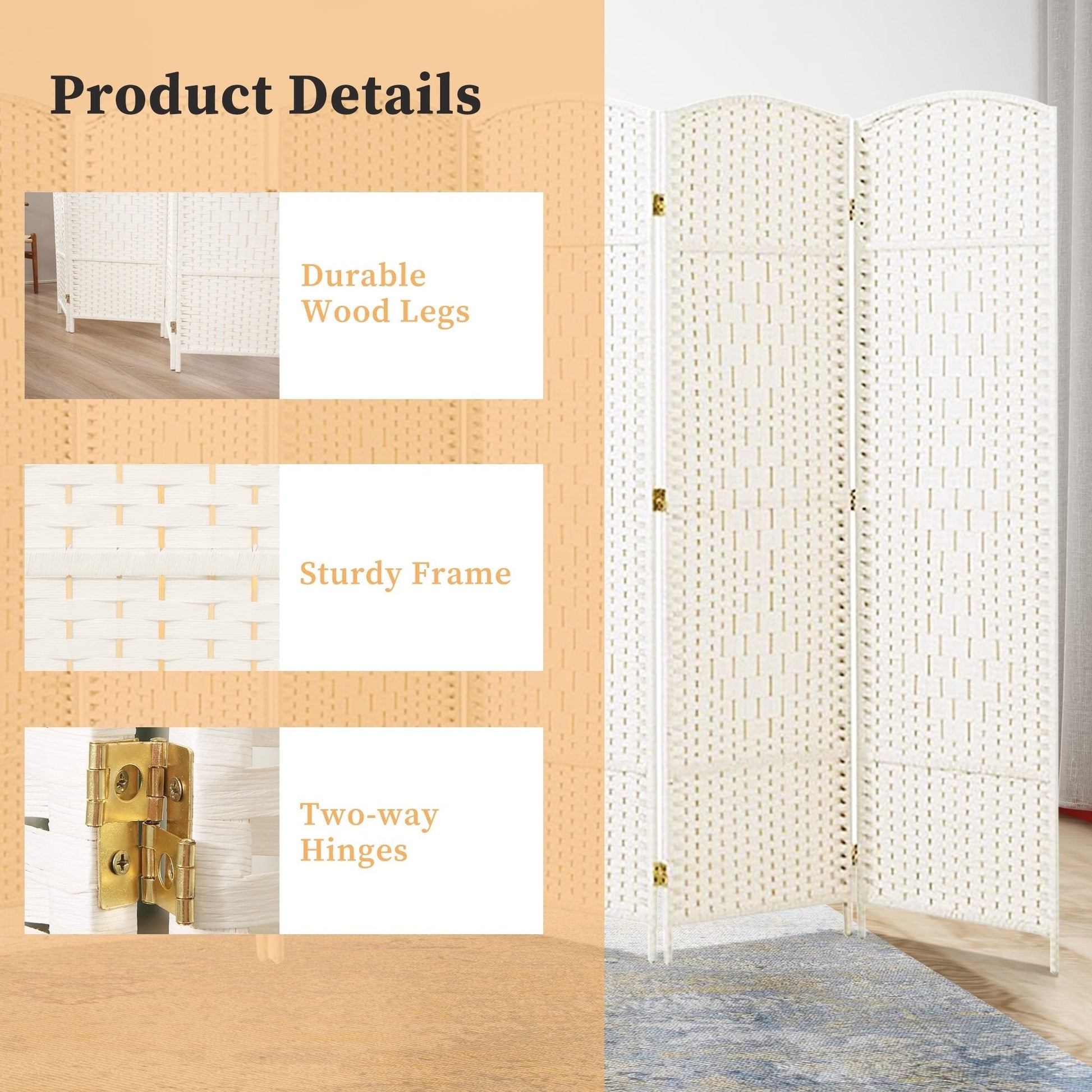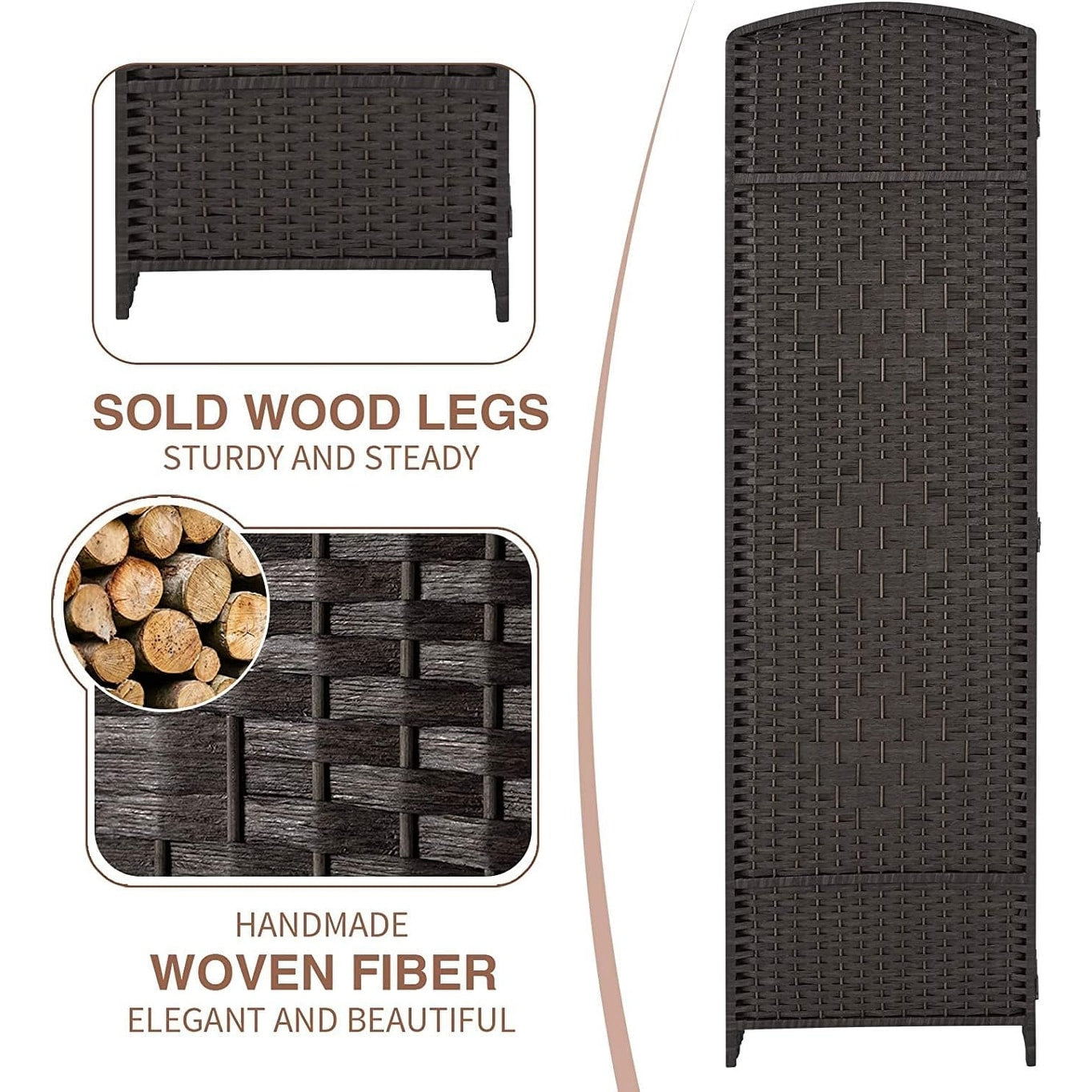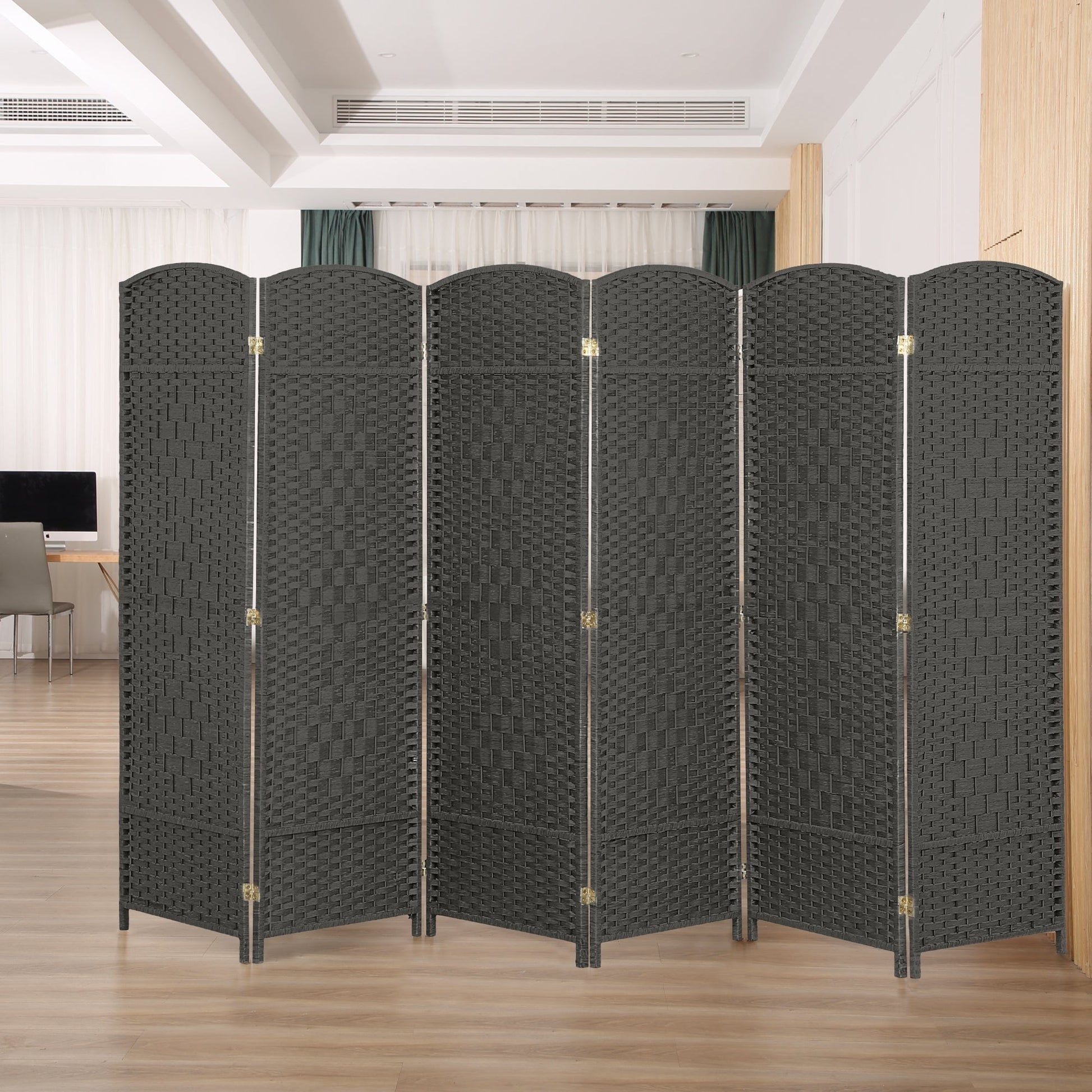 Paravent de séparation de pièce de 6 pieds de haut en fibre tissée, écran de confidentialité autoportant, écran pliant