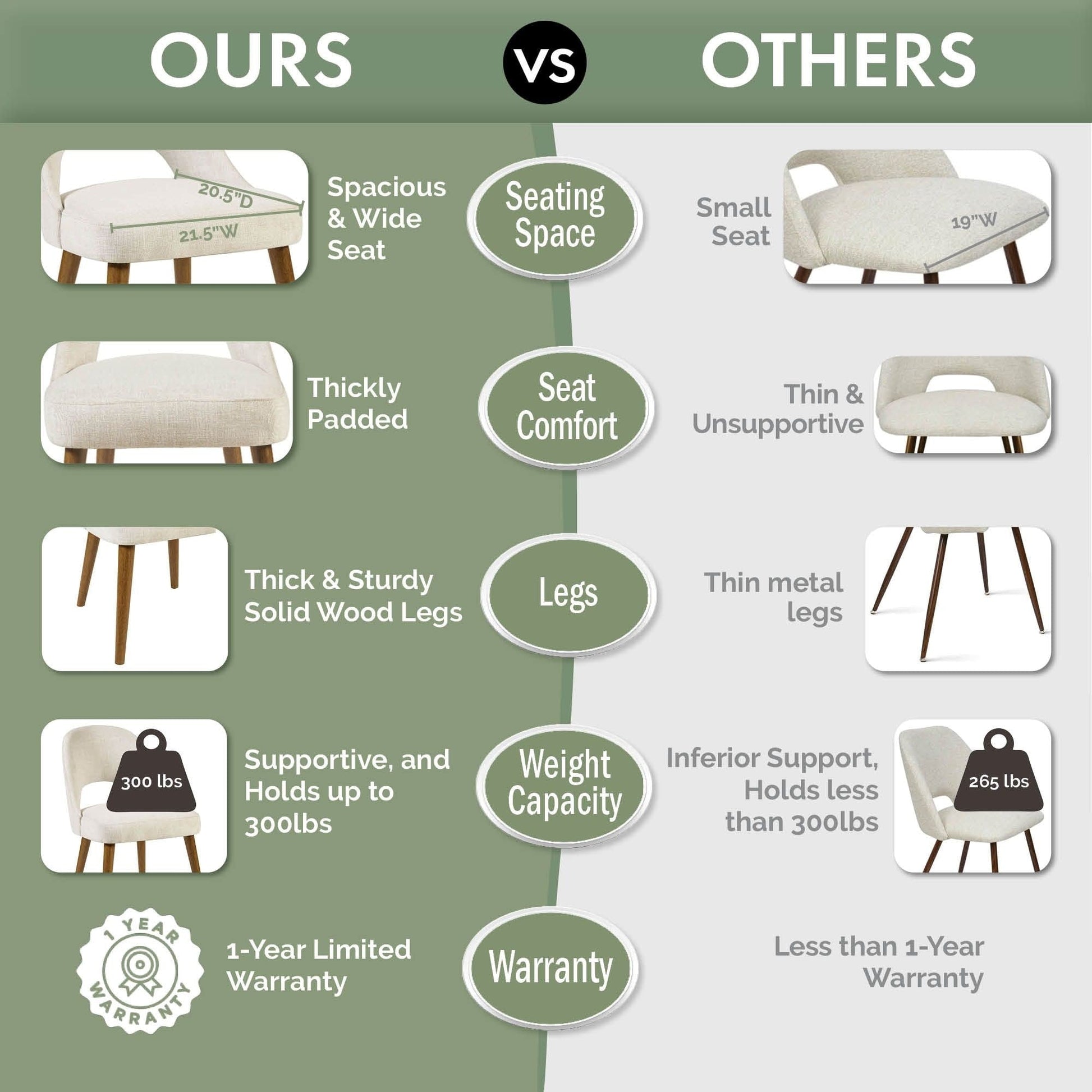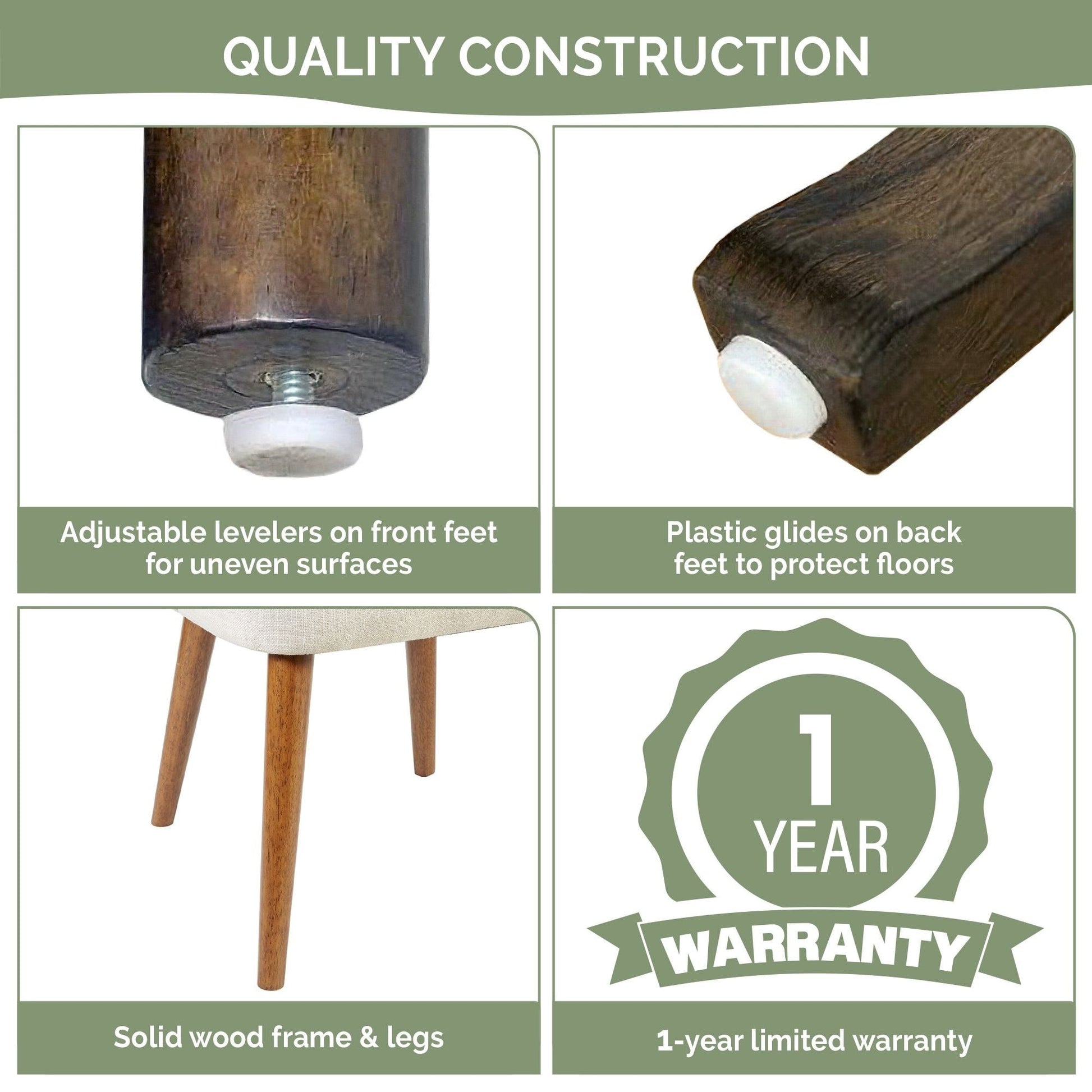 • Construction robuste avec un cadre en bois massif et des pieds en bois pouvant supporter jusqu'à 300 lb