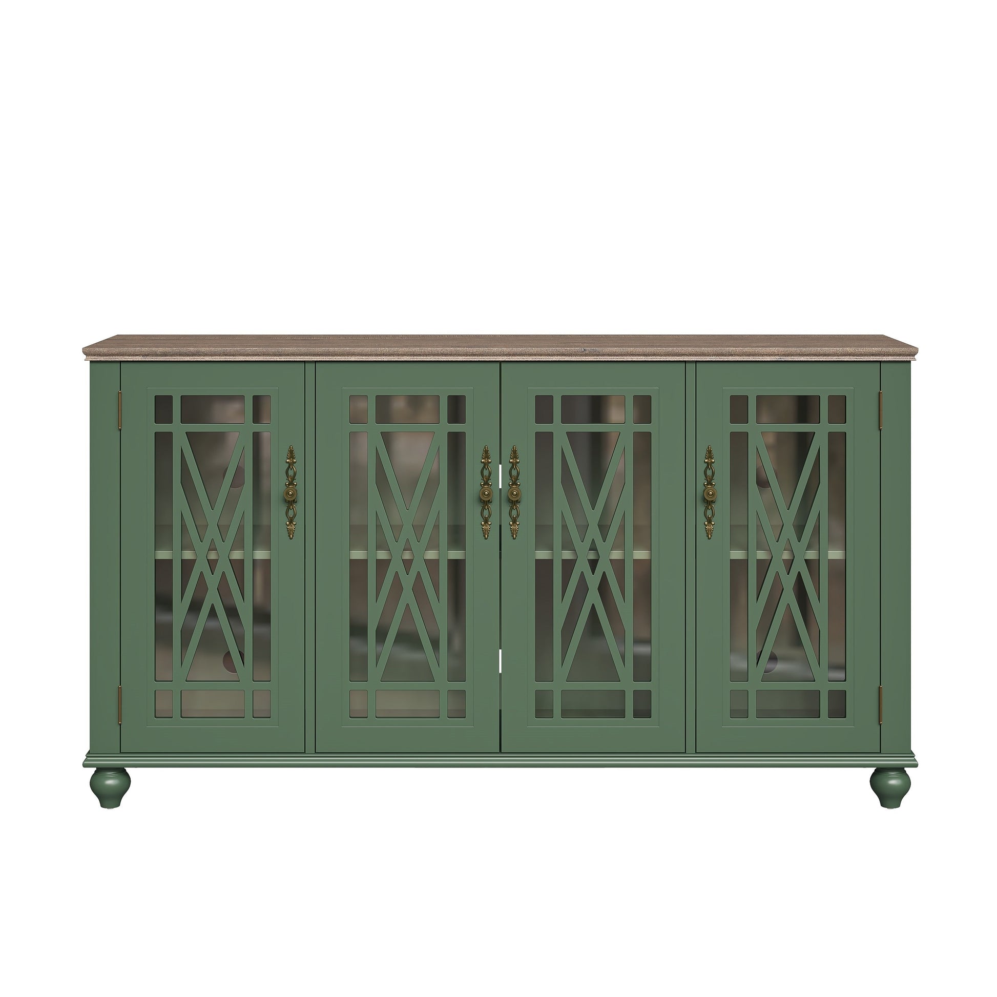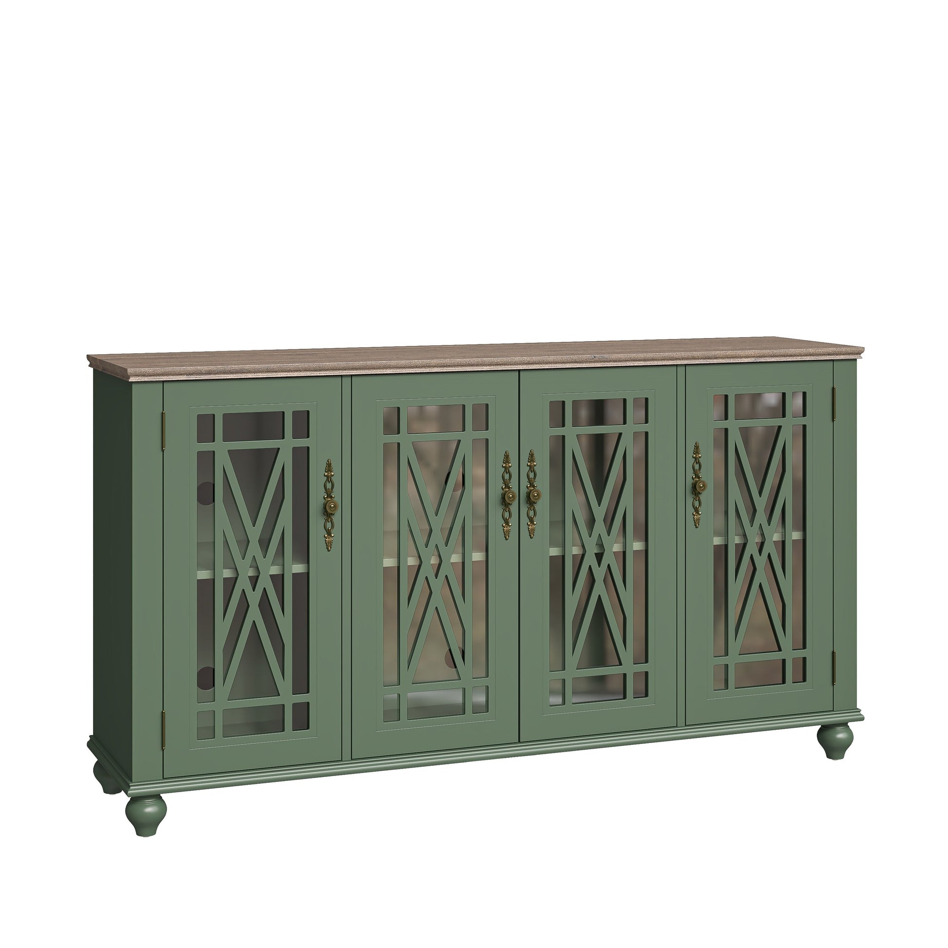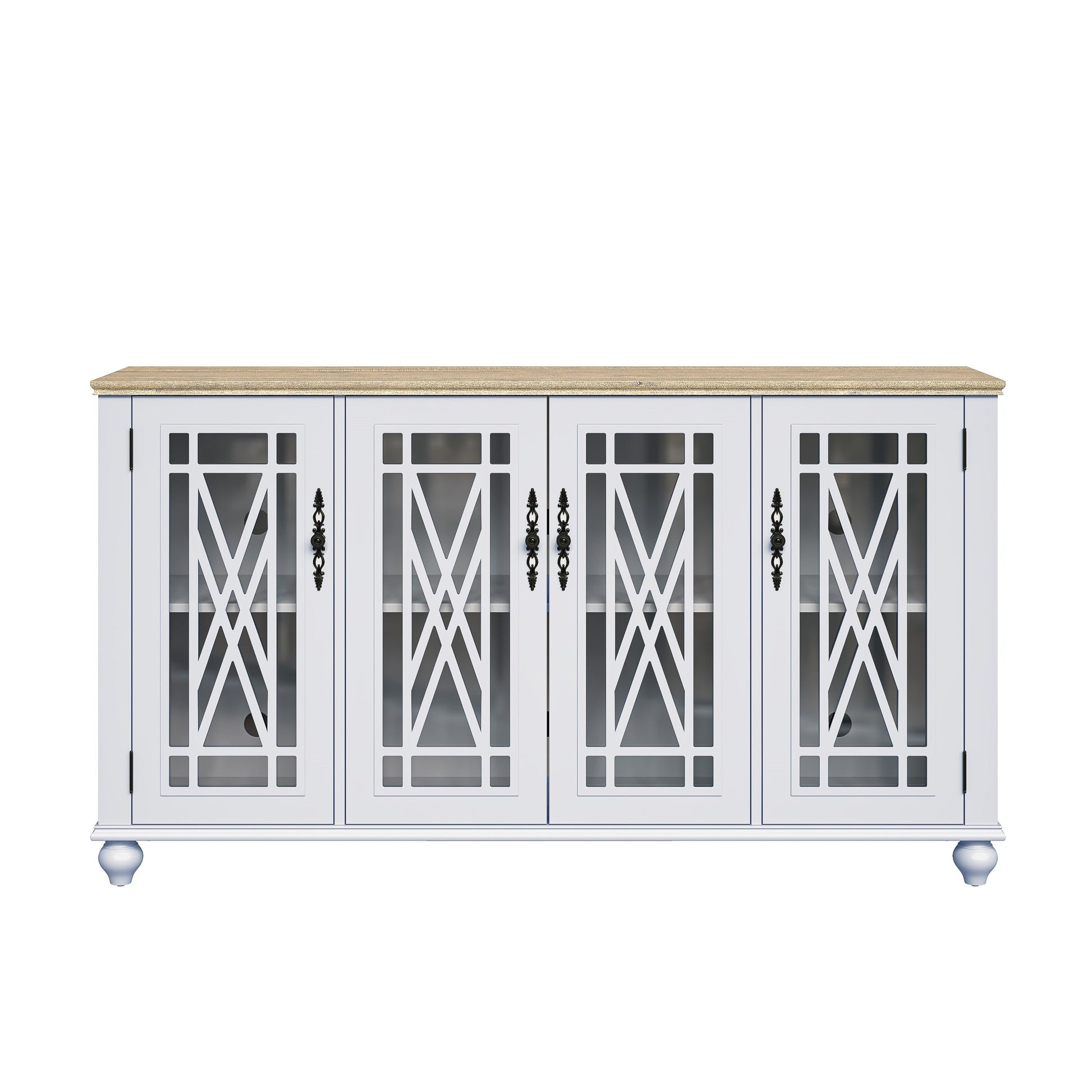 Ajoutez une touche de charme vintage à votre intérieur avec ce meuble de rangement unique et fonctionnel. Fabriqué en bois massif et MDF de haute qualité pour une construction durable, ce meuble est doté de quatre portes vitrées avec un revêtement en bois raffiné et de poignées métalliques de style vintage. Doté d'étagères réglables, ce meuble offre un vaste espace de rangement personnalisable selon vos besoins. Utilisez-le comme buffet dans la cuisine ou la salle à manger, comme console dans le salon ou comme solution de rangement dans l'entrée. Ses charnières à montage rapide facilitent le montage.