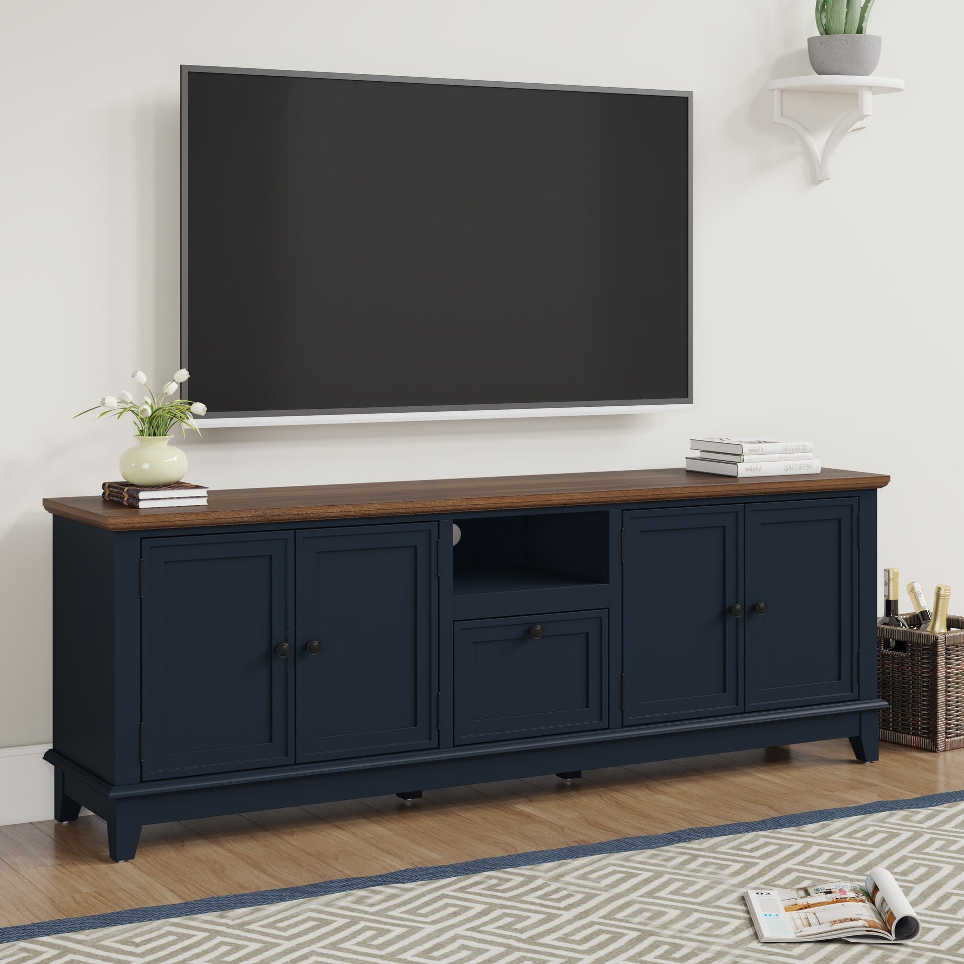Meuble TV rustique de 72 pouces avec étagères...