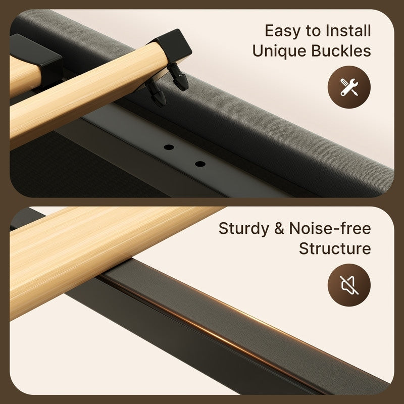 • Confort amélioré : Le tissu rembourré du cadre de lit et de la tête de lit ajoute du confort, ce qui en fait un endroit confortable pour s'appuyer tout en lisant ou en regardant la télévision.