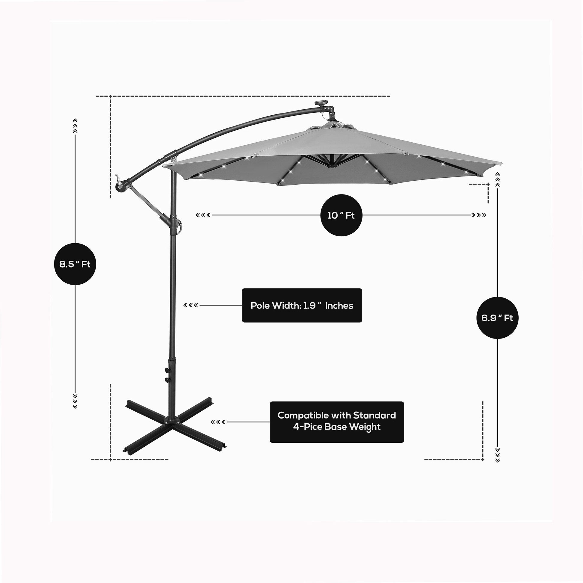 Parasol de terrasse éclairé à énergie solaire de...
