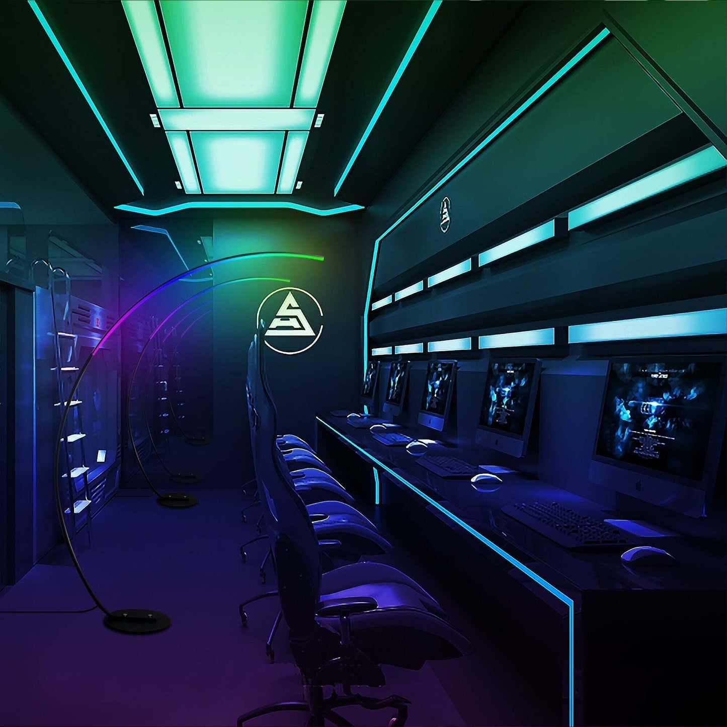Lampadaire arqué à intensité variable à 69 LED - RGBW - N/A