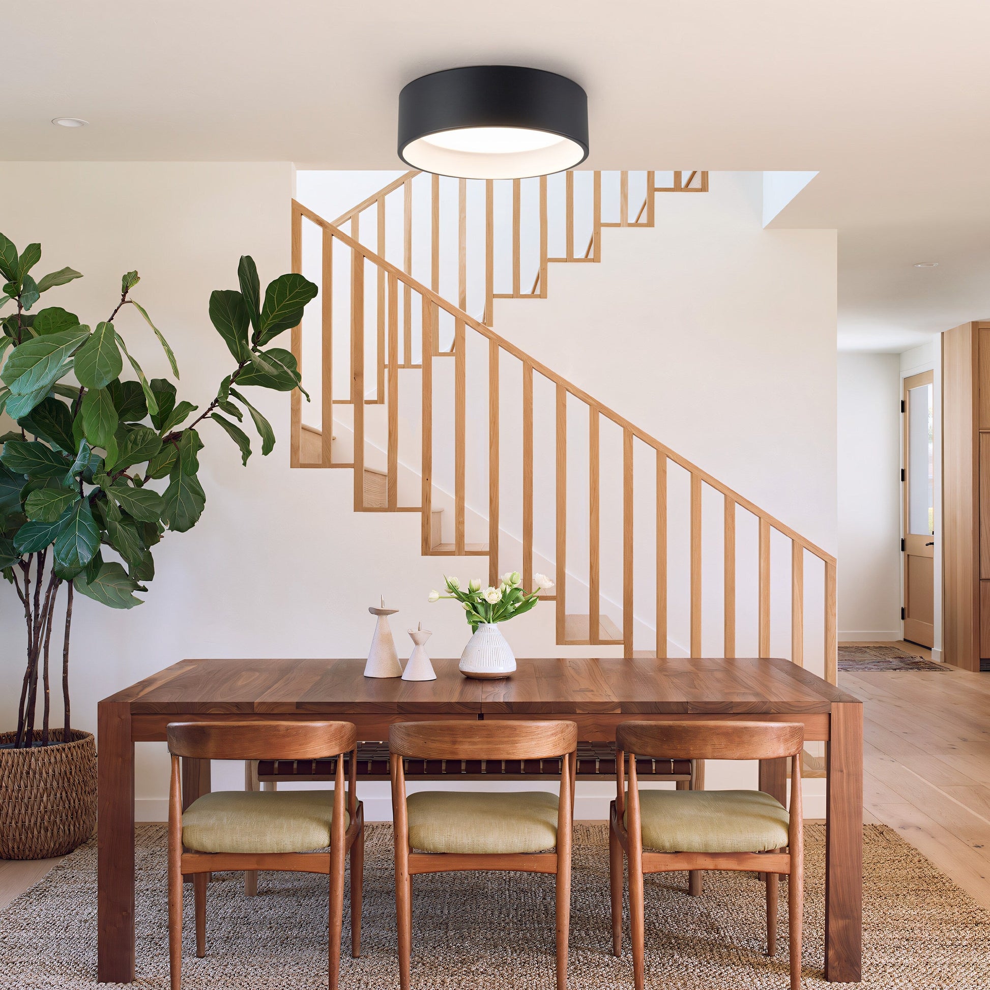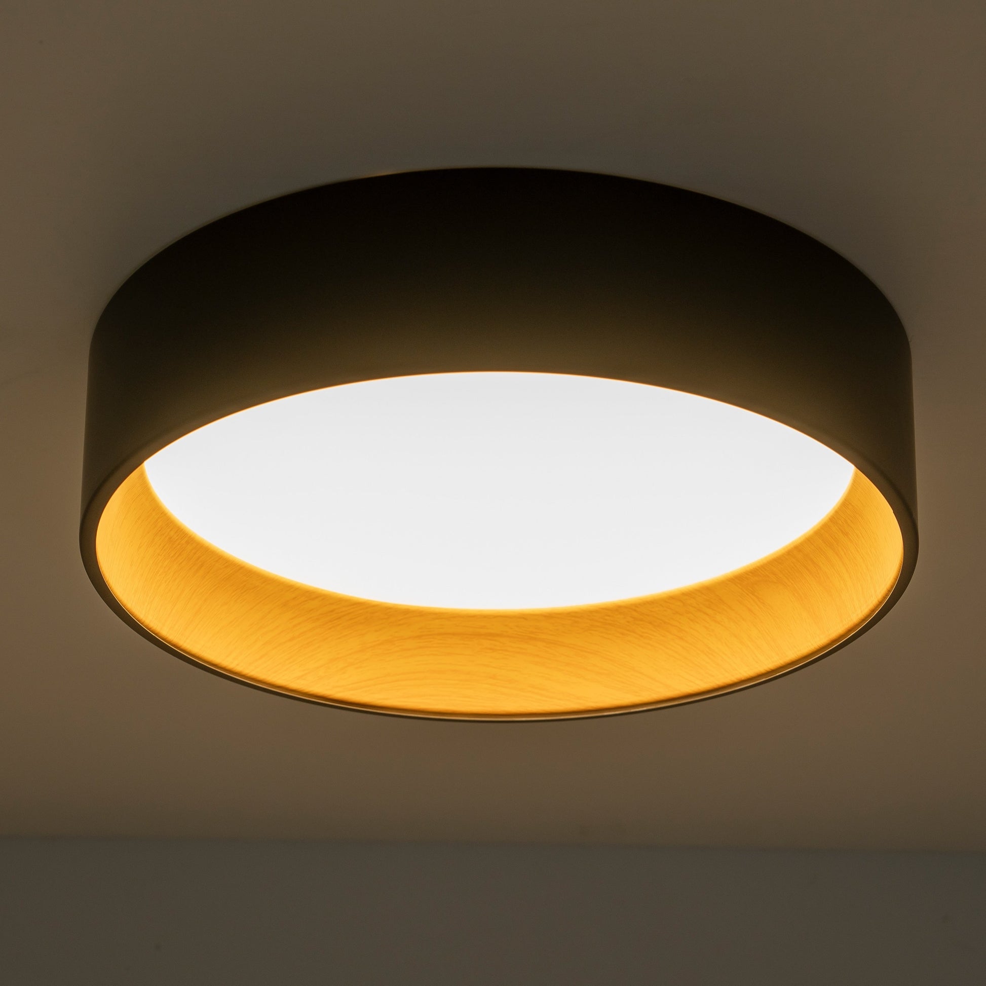 • Elegant two-toned drum LED flush mount ceiling light.