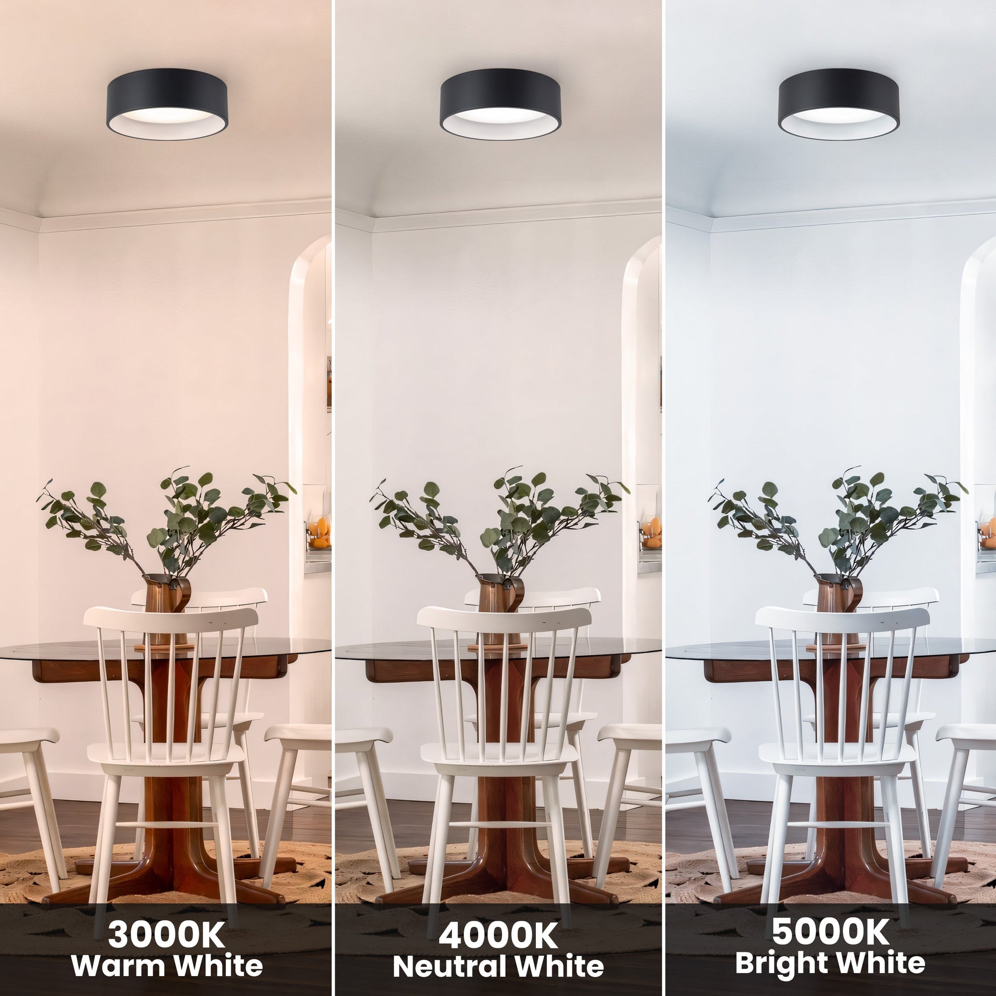 • Built-in 25W/28W 1800lm/2200lm energy-saving LEDs, 3000K/4000K/5000K color temperature adjustable.