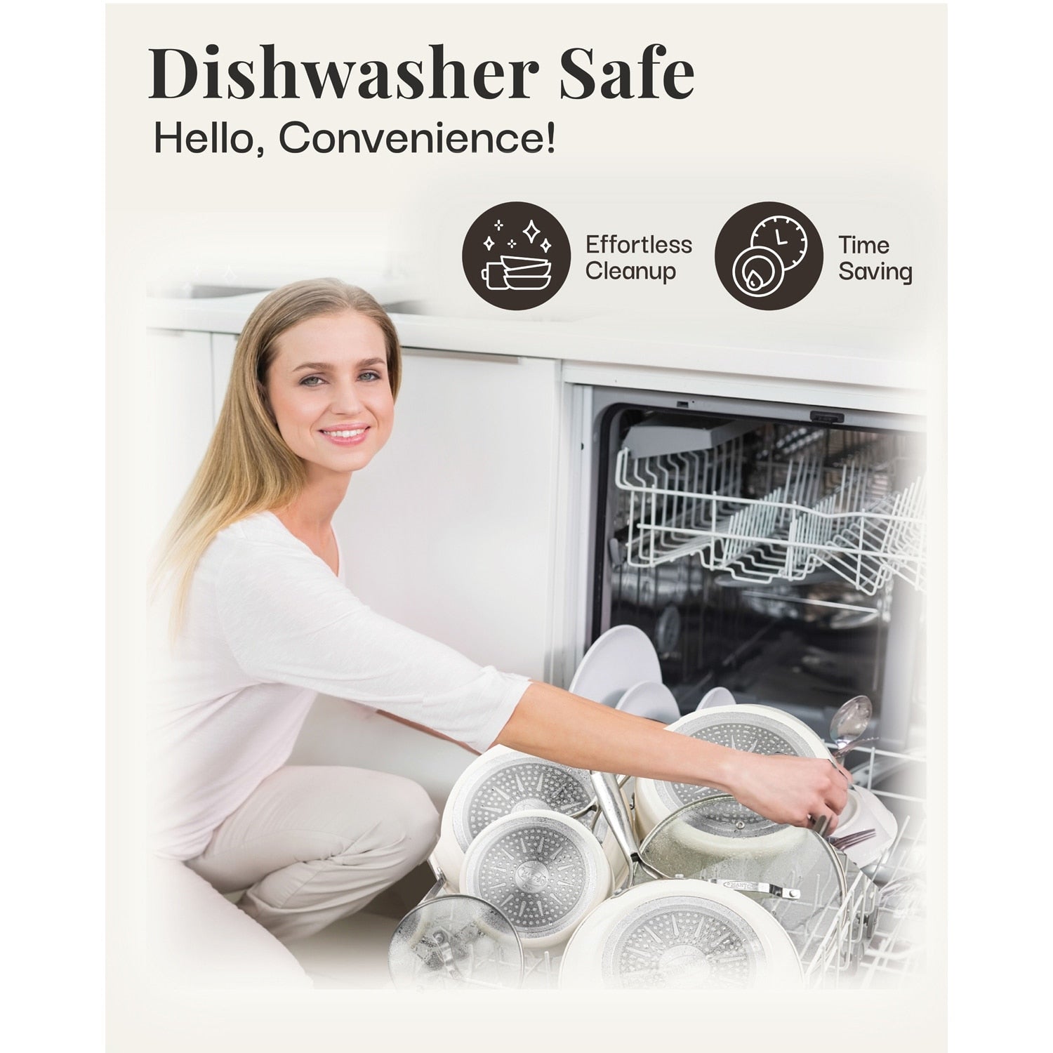 Finition crème classique : apporte une touche chaleureuse et accueillante à votre cuisine, alliant élégance intemporelle et technologie de cuisson moderne.
