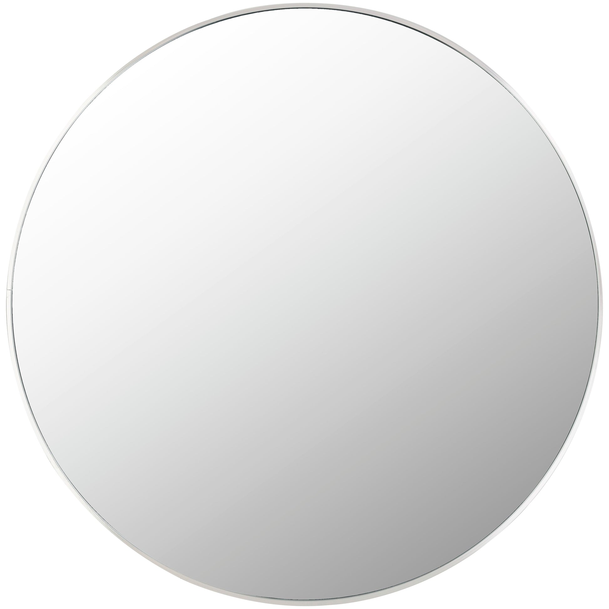 This classic round framed mirror evokes a vintage vibe in modern interiors. The versatile circular shape softens the space with stylish appeal. Made in China, this mirror has a vertical hang orientation using key-hole hardware. The mirror frame is made of aluminum and is available in four finishes: black, white, gold, and silver. The gold and silver finishes feature a brushed metal for visual texture and a luxe look.