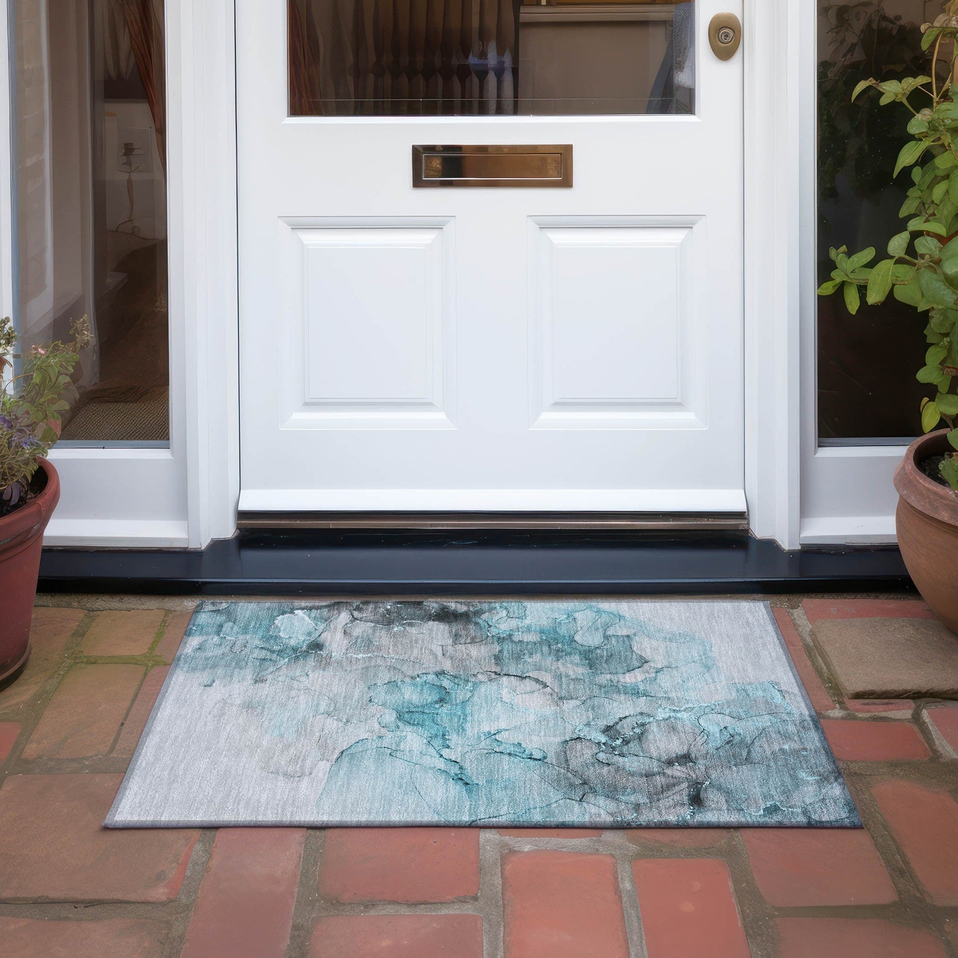 Bring home the calm with our area rug, featuring soft watercolor palettes that instill peacefulness. Its transitional watercolor design seamlessly blends with various decor styles. The rug is UV stabilized for indoor and outdoor use, and its ultra-thin design includes a non-skid backing, saving you the cost of an extra rug pad. The ultra thin profile allows for fast drying after a rainfall or outdoor cleaning. It's machine-washable, family, and pet-friendly, epitomizing practicality and style. Larger rug sizes may not fit into a residential washing machine. They may be washed in a commercial size washing machine or hosed-off outside with mild soap and water. Air-dry, do not machine dry. All rugs exposed to long periods of intense and direct sunlight can experience loss of color over time. Our rugs perform best in covered outdoor areas and uncovered areas with lower hours of direct sunlight.
