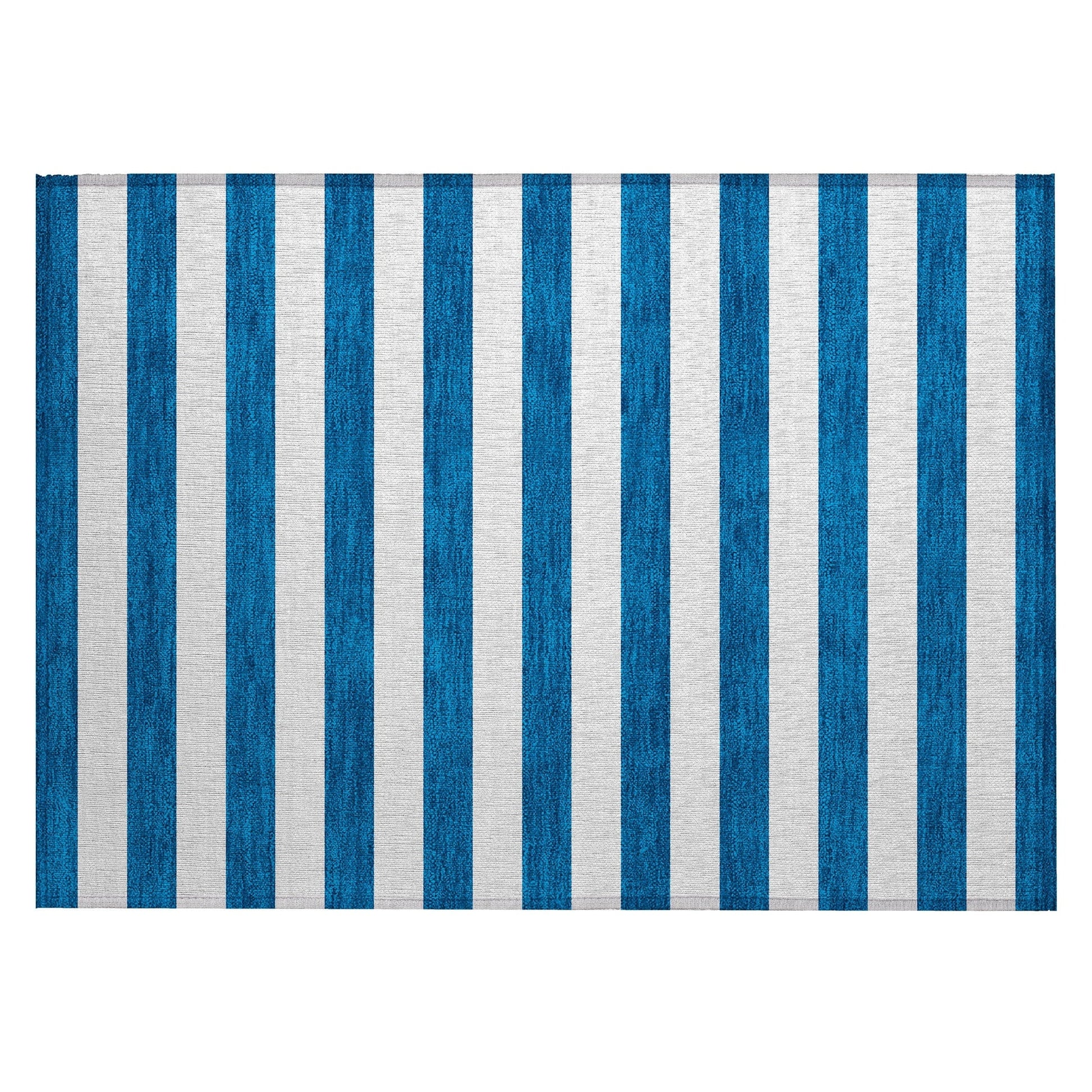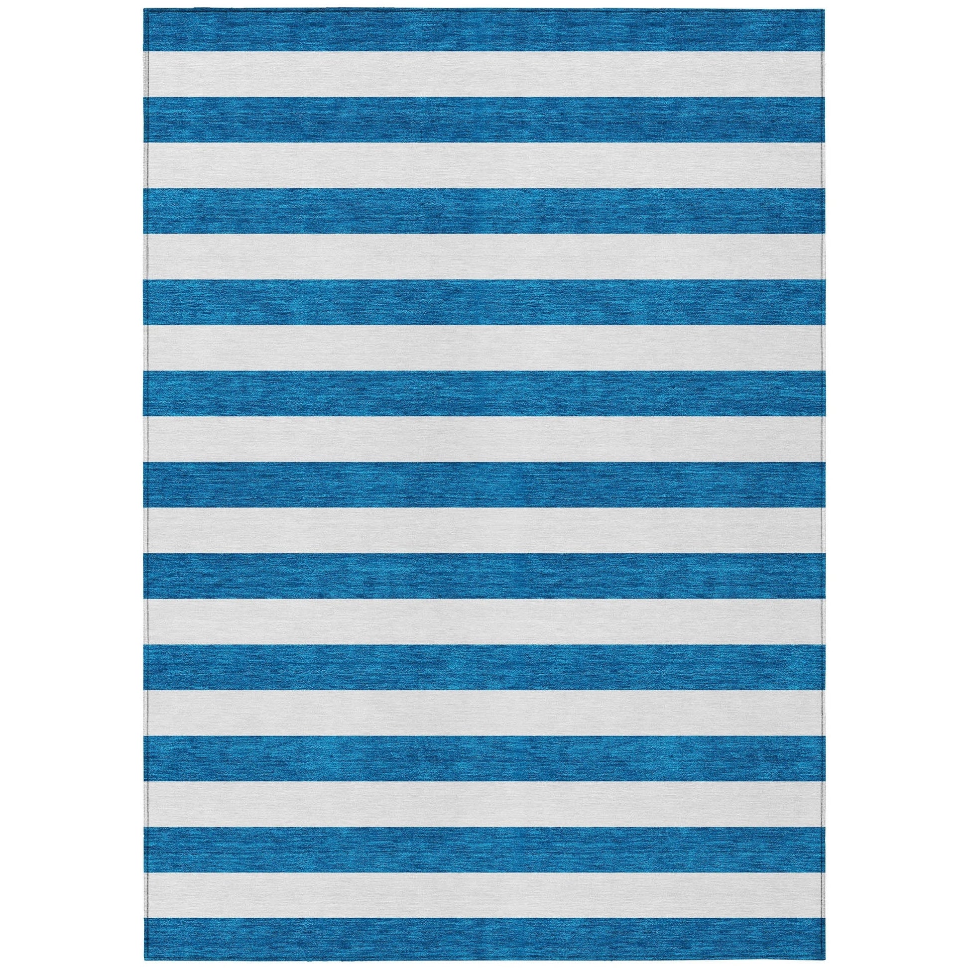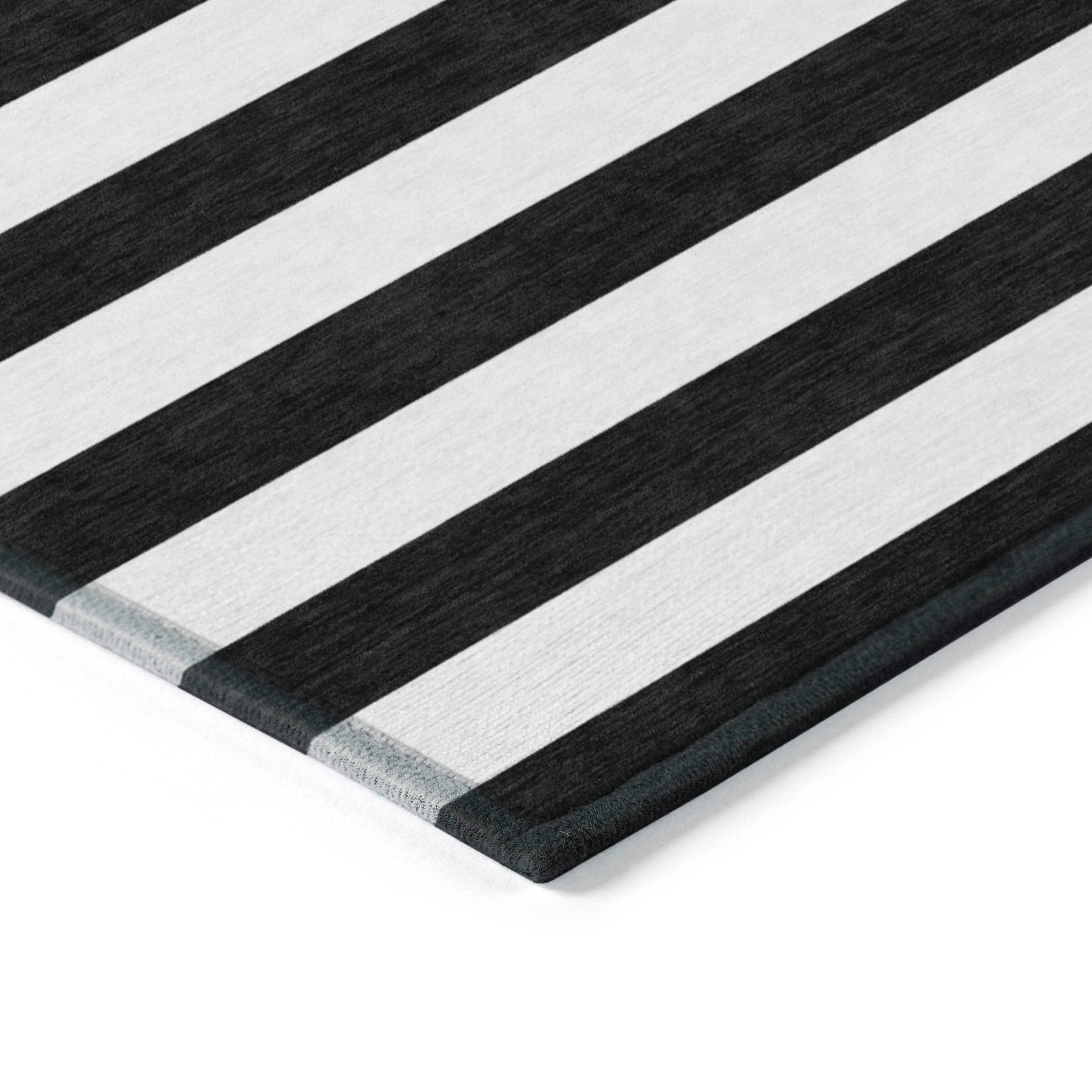Unleash your creativity with our area rug, showcasing bold thick cabana lines that infuse energy and visual interest into your space. This transitional striped rug is a true standout piece. With UV stabilization, it can be confidently placed indoors or outdoors, allowing for versatile placement. The ultra-thin construction includes an incorporated non-skid backing, ensuring stability and removing the need for a separate rug pad. The ultra thin profile allows for fast drying after a rainfall or outdoor cleaning. It's machine-washable and designed to be family and pet-friendly, making it a practical choice for busy households. Larger rug sizes may not fit into a residential washing machine. They may be washed in a commercial size washing machine or hosed-off outside with mild soap and water. Air-dry, do not machine dry. All rugs exposed to long periods of intense and direct sunlight can experience loss of color over time. Our rugs perform best in covered outdoor areas and uncovered areas with lower hours of direct sunlight.
