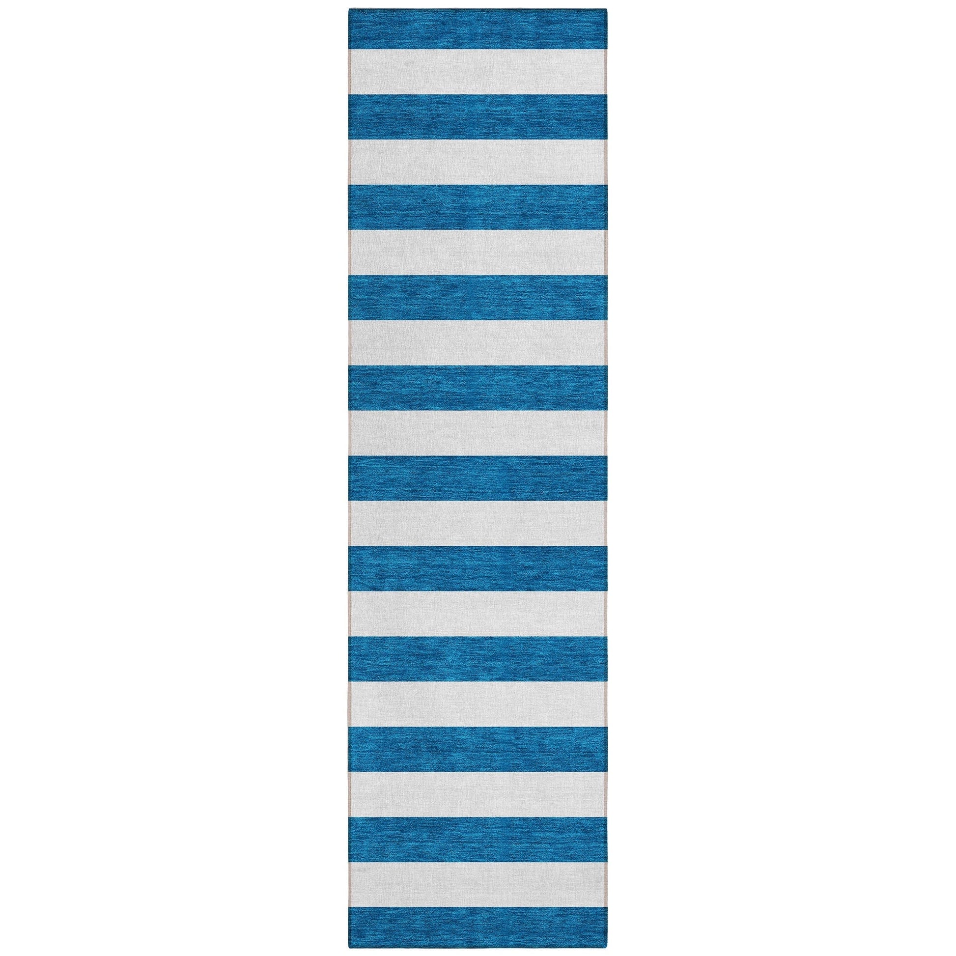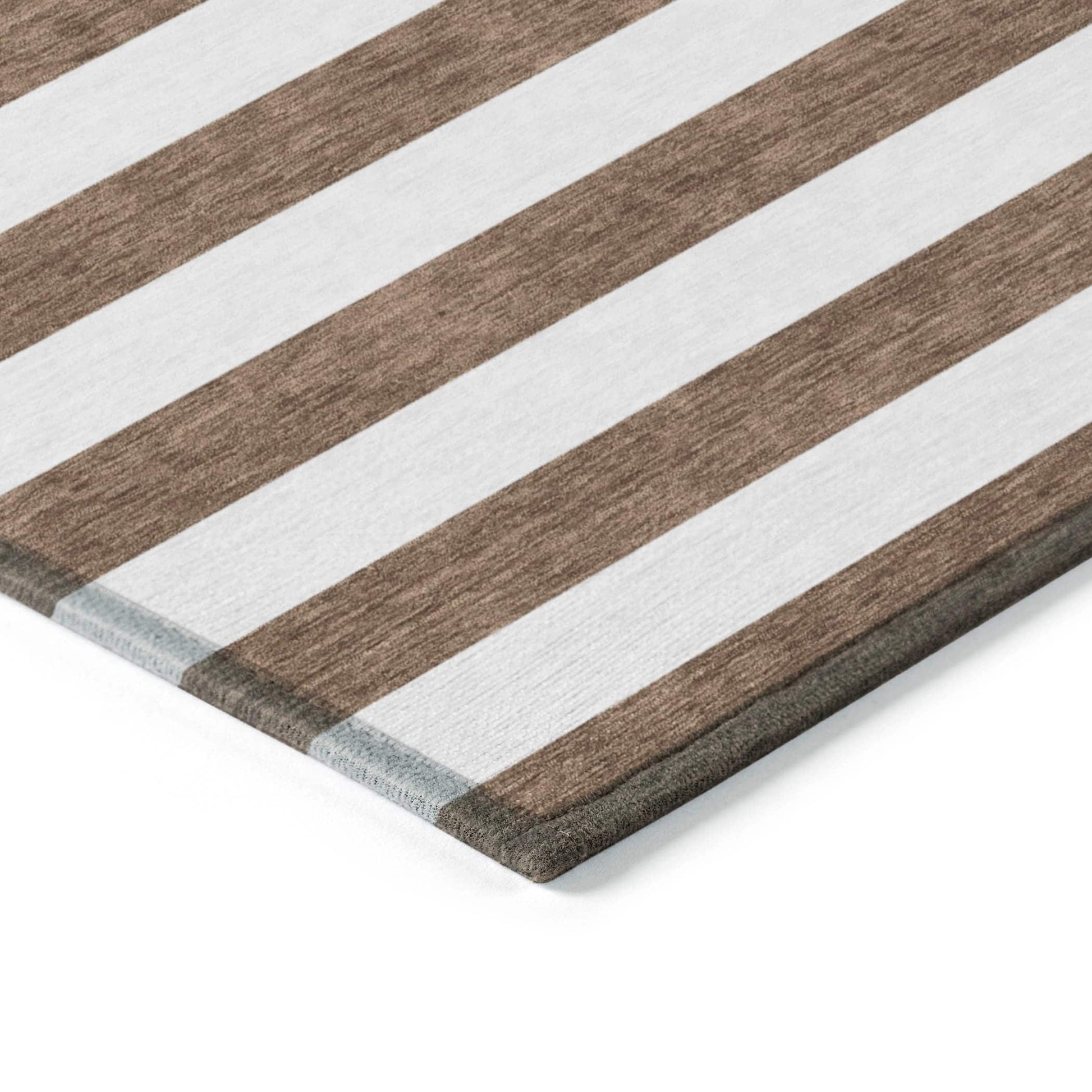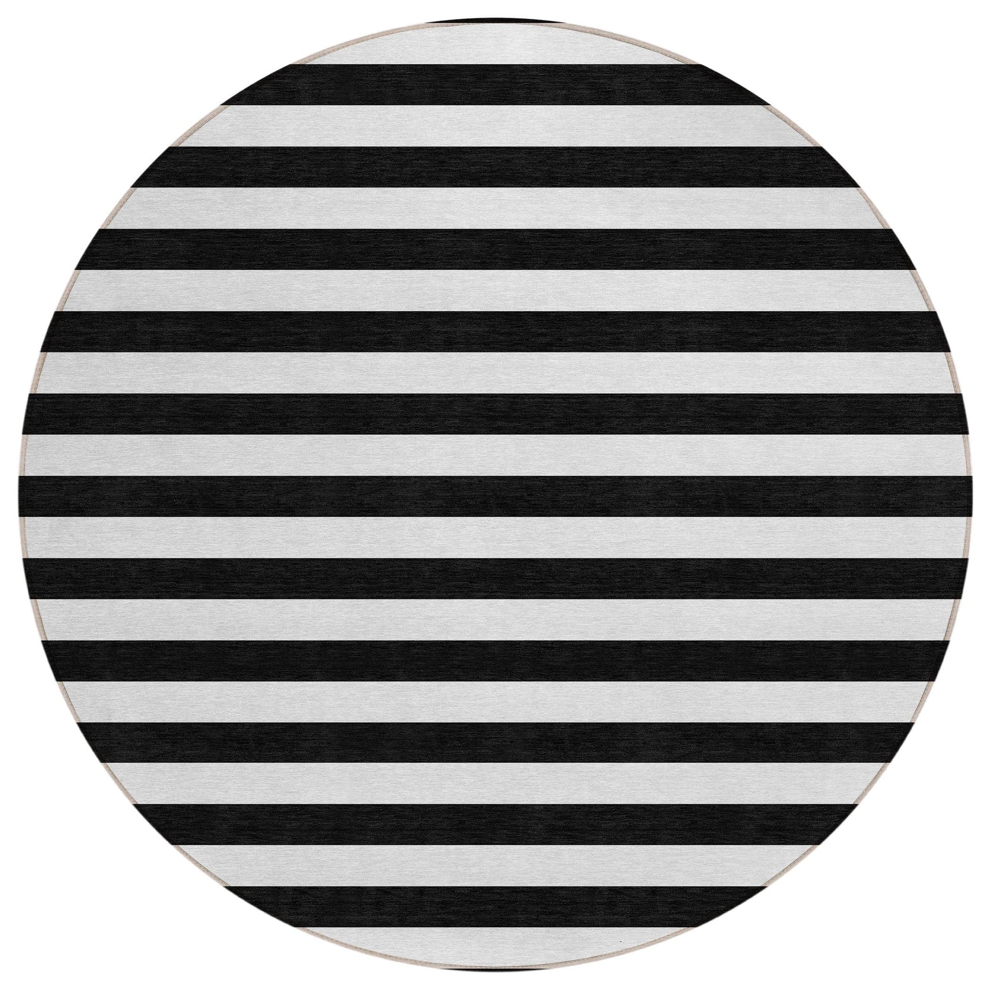 Unleash your creativity with our area rug, showcasing bold thick cabana lines that infuse energy and visual interest into your space. This transitional striped rug is a true standout piece. With UV stabilization, it can be confidently placed indoors or outdoors, allowing for versatile placement. The ultra-thin construction includes an incorporated non-skid backing, ensuring stability and removing the need for a separate rug pad. The ultra thin profile allows for fast drying after a rainfall or outdoor cleaning. It's machine-washable and designed to be family and pet-friendly, making it a practical choice for busy households. Larger rug sizes may not fit into a residential washing machine. They may be washed in a commercial size washing machine or hosed-off outside with mild soap and water. Air-dry, do not machine dry. All rugs exposed to long periods of intense and direct sunlight can experience loss of color over time. Our rugs perform best in covered outdoor areas and uncovered areas with lower hours of direct sunlight.