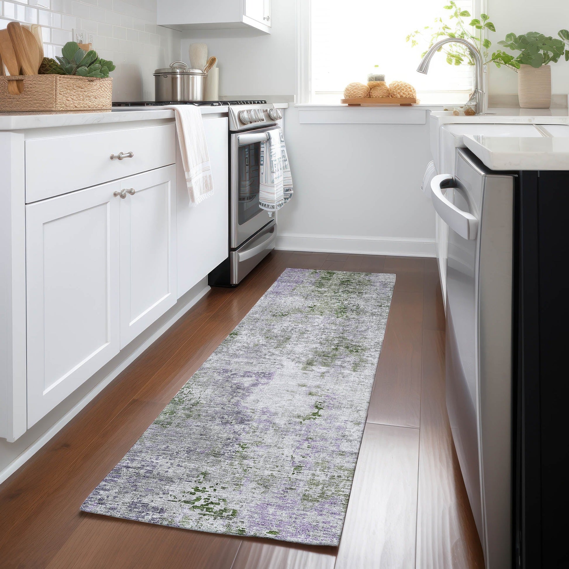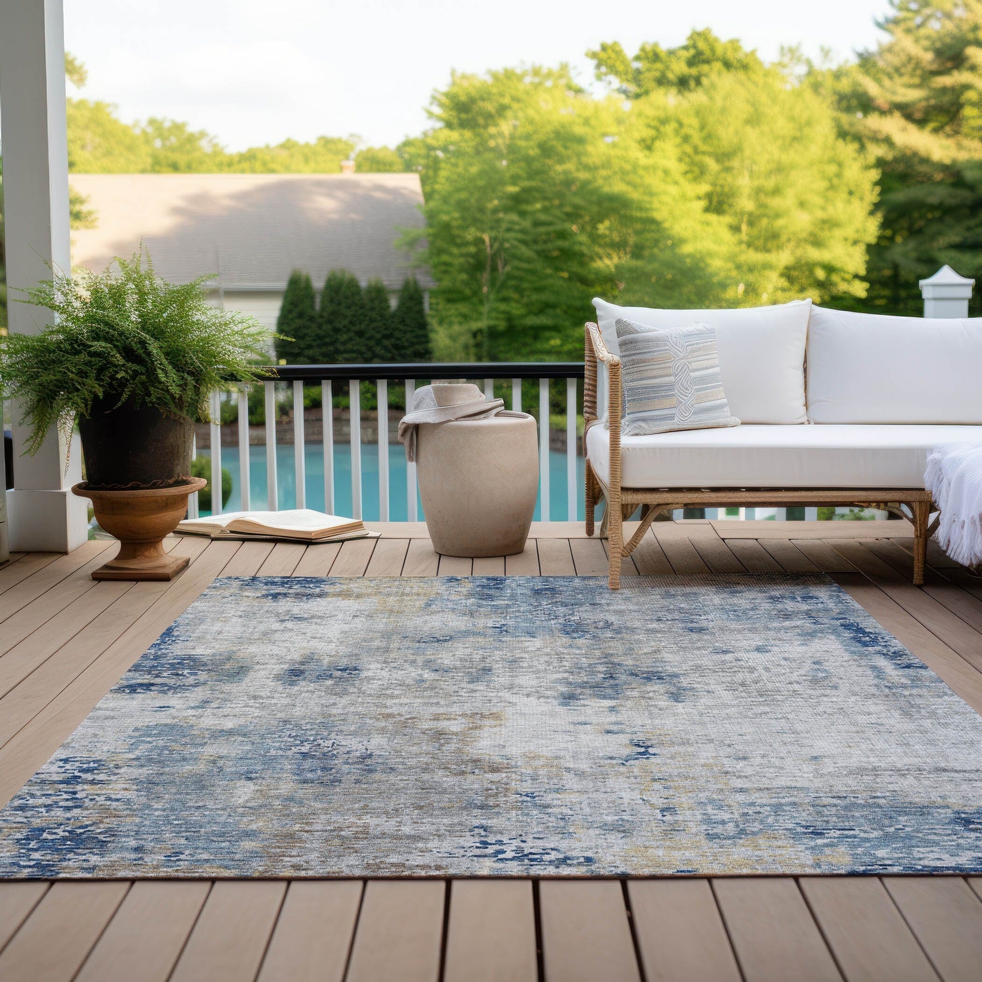 Adorn your floors with our area rug, featuring abstract patterns and whimsical motifs that blend transitional and modern styles. The rug's unique design adds a touch of creativity and fun to your decor. It's UV stabilized for longevity in any environment, ultra-thin for easy handling, machine-washable for hassle-free upkeep, and ideal for both families and pets. The ultra thin profile allows for fast drying after a rainfall or outdoor cleaning. UV Stabilized For Indoor or Outdoor Use. All rugs exposed to long periods of intense and direct sunlight can experience loss of color over time. Our rugs perform best in covered outdoor areas and uncovered areas with lower hours of direct sunlight.Larger rug sizes may not fit into a residential washing machine. They may be washed in a commercial size washing machine or hosed-off outside with mild soap and water. Air-dry, do not machine dry. While each rug already has a non-skid backing, the necessity for additional cushion or room settings with high traction areas, may require an additional rug pad.