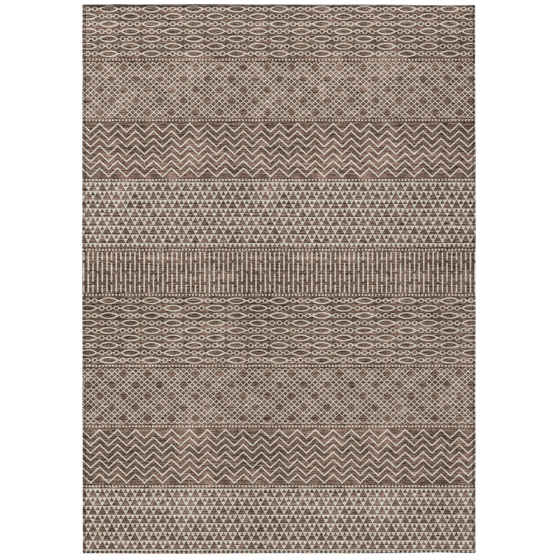 Machine Washable Indoor/ Outdoor Modern Stripes Chantille Rug