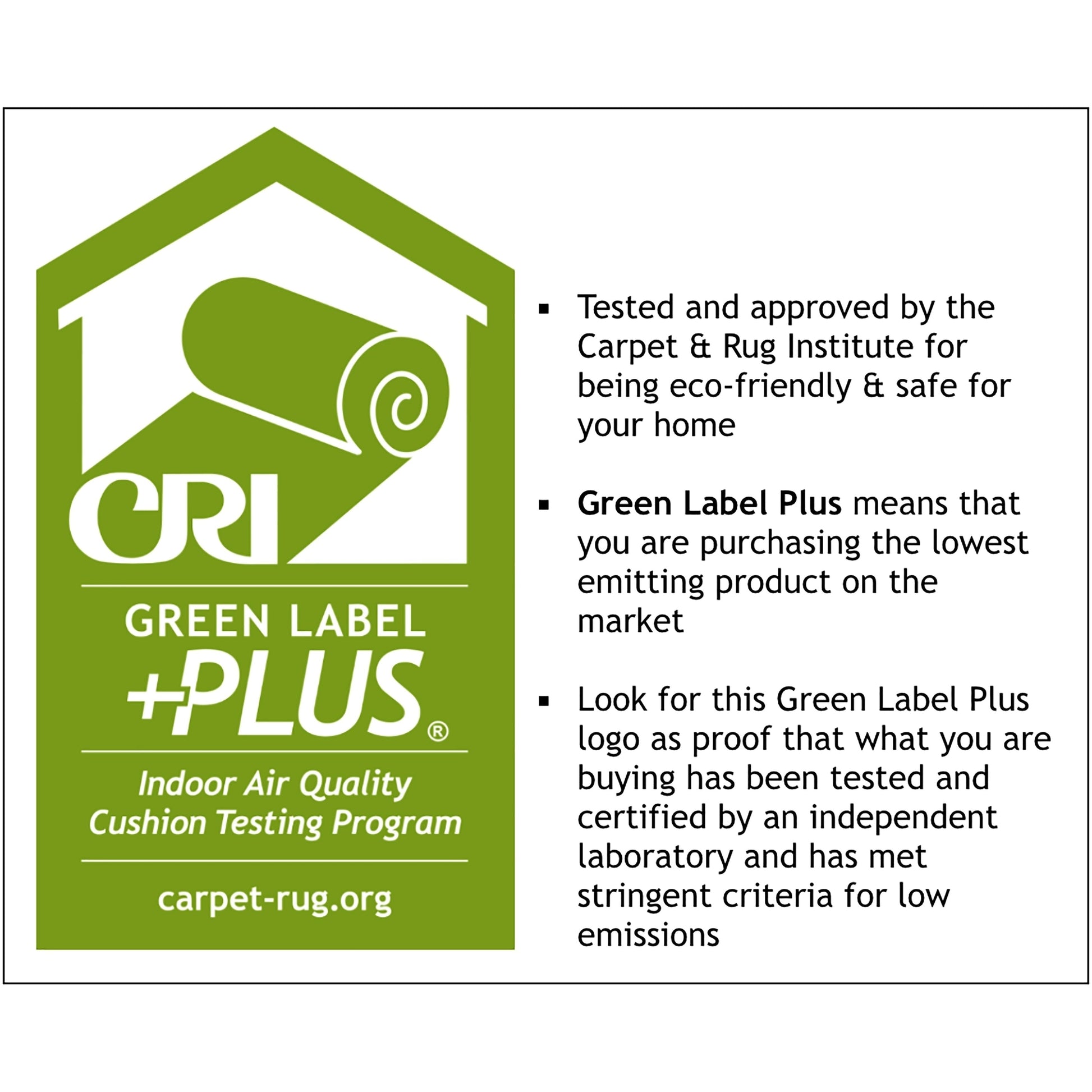 GREEN LABEL PLUS: Certified by The Carpet & Rug Institute, our rug pads are top quality eco-friendly products with the lowest chemical emissions on the market.