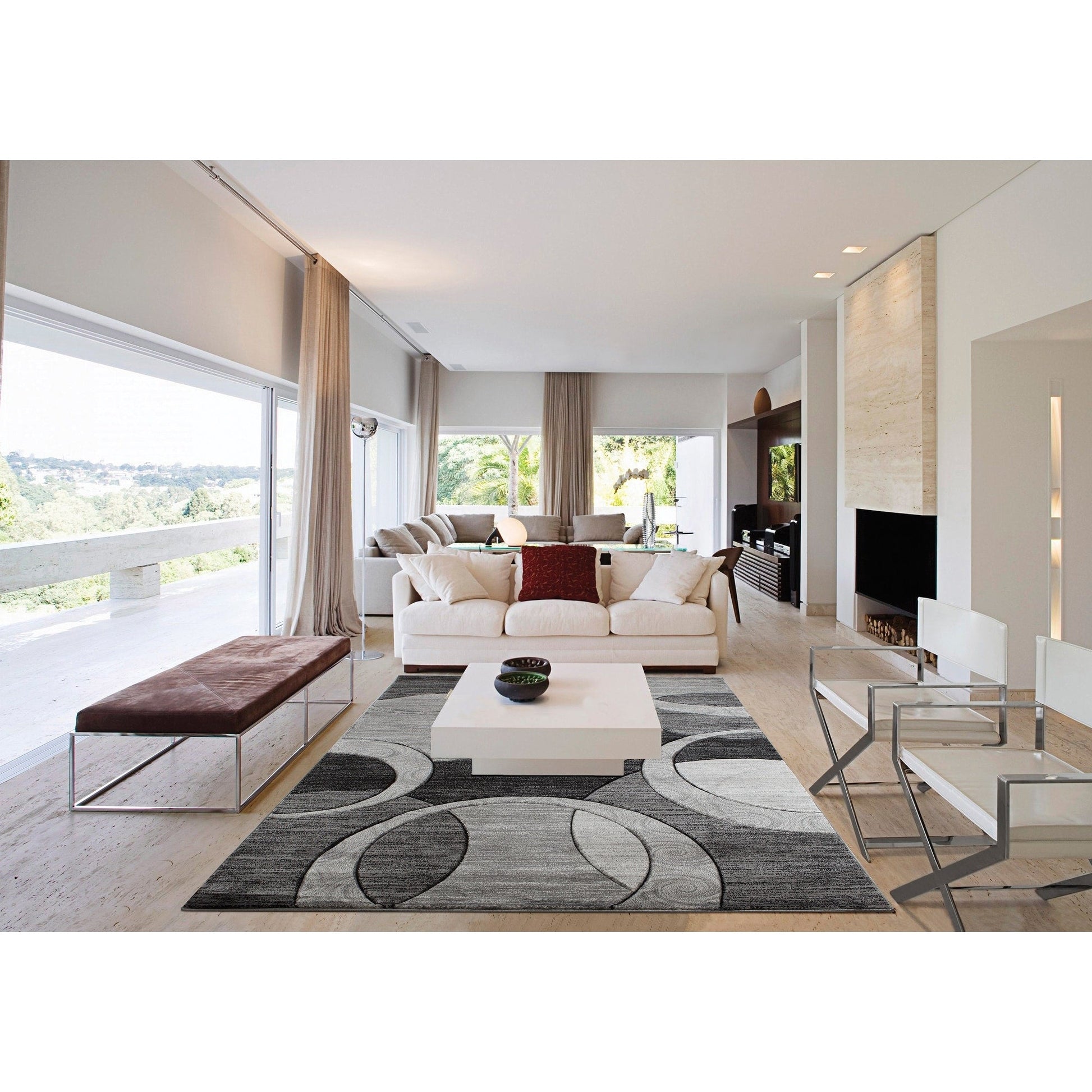 Orelsi Collection Abstract Geometric Circles Area Rug