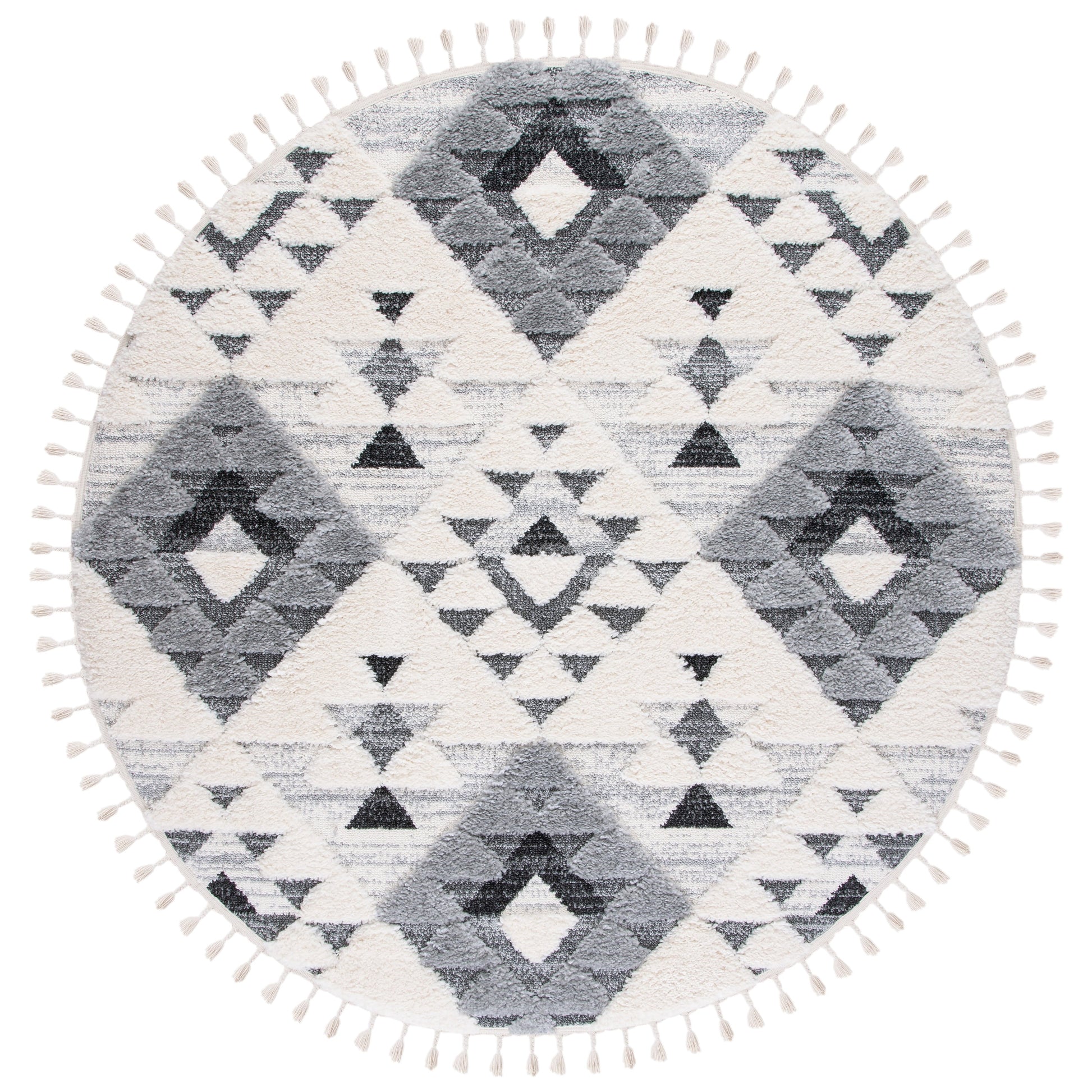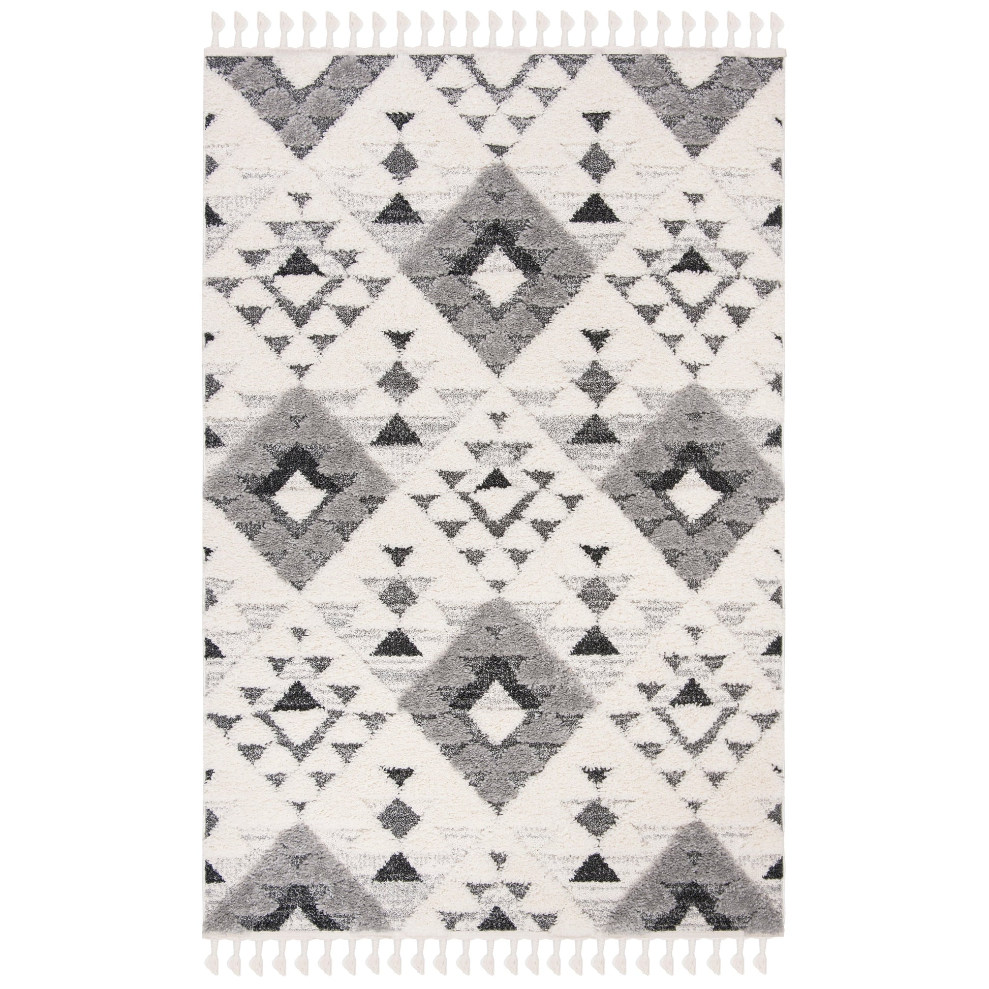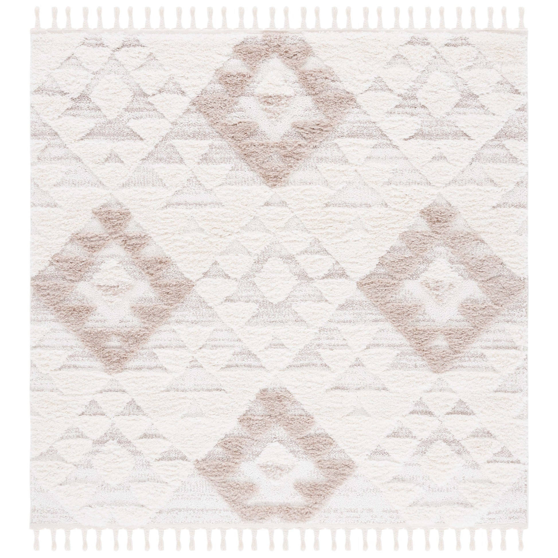 Add a plush and stylish touch to your home with this SAFAVIEH Moroccan Tassel Shag Kobi rug. The classic Moroccan diamond trellis and abstract patterns in neutral colors create a contemporary statement piece that complements any decor. The 2-inch pile thickness provides a soft and cozy feel underfoot, while the non-shedding synthetic fibers ensure long-lasting durability. The chic braided tassels add bohemian flair to the overall design. Perfect for any room in your home, this machine-made rug is part of SAFAVIEH's Moroccan Tassel Shag Collection.