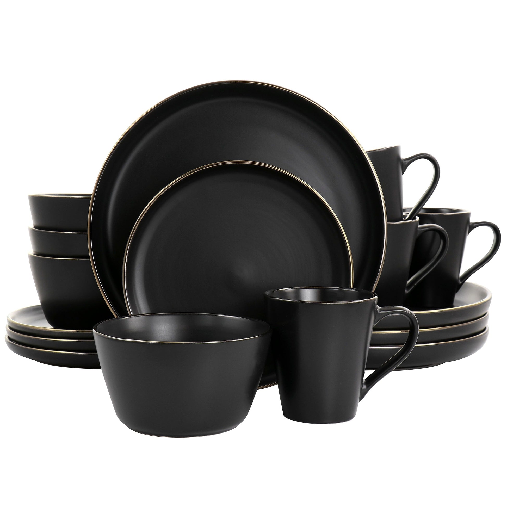 Service de table 16 pièces en grès noir avec bordure dorée